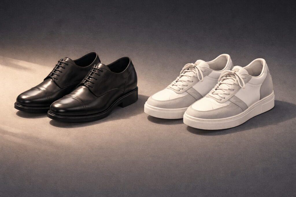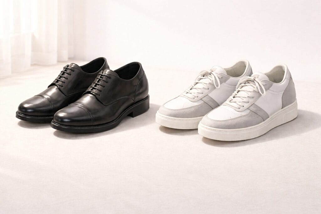 革靴型とスニーカー型、どちらを選ぶか—シークレットシューズをシーンで使い分ける戦略